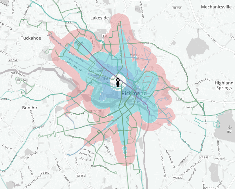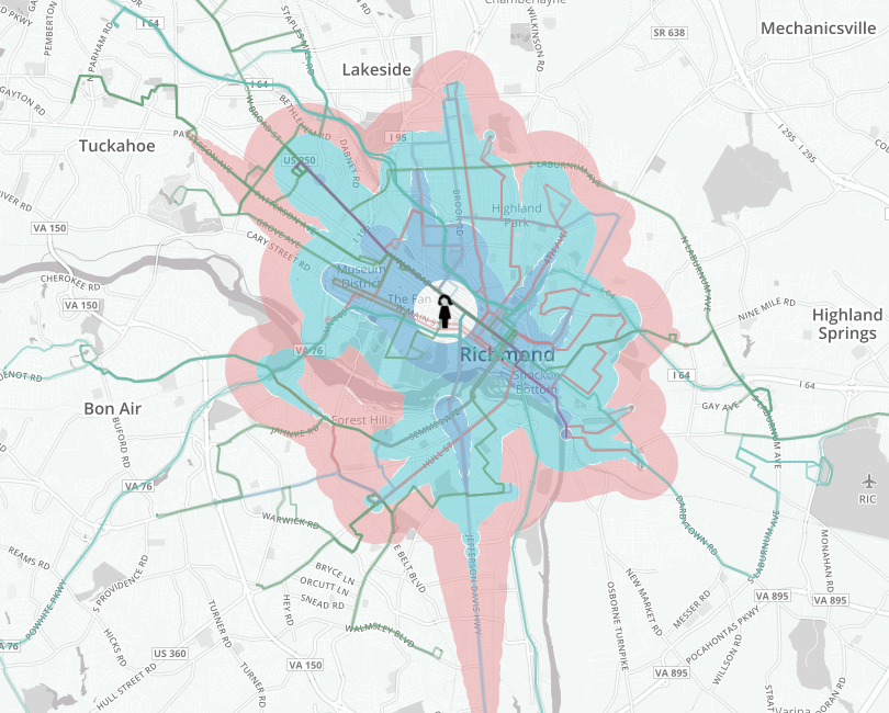 More information, and a number of isochrones for more places in Richmond, is available at the project webpage.